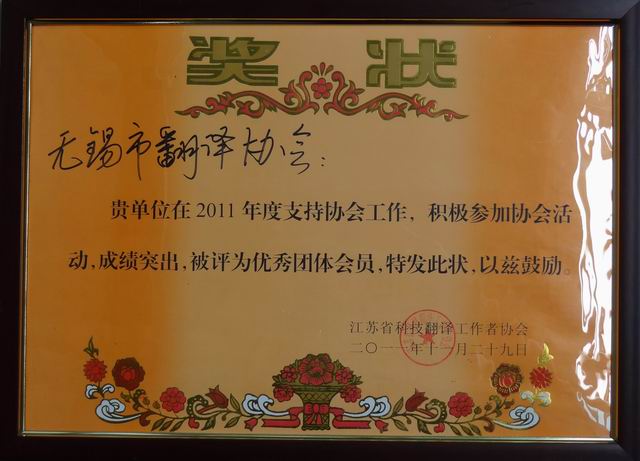 榮獲“江蘇省科技翻譯工作者協(xié)會-優(yōu)秀團體會員”。