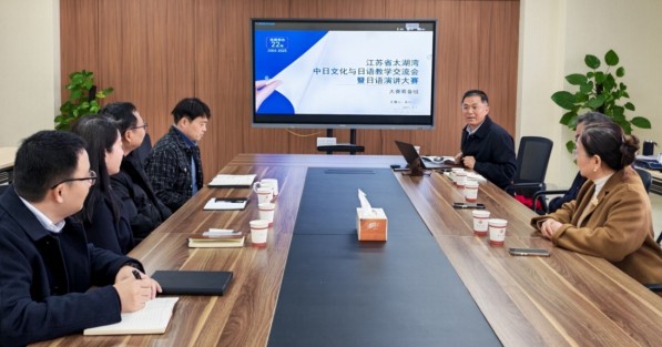 最后,陳穎院長(zhǎng)表示,本月29日將率領(lǐng)班子全體成員赴無(wú)錫太湖學(xué)院參加今年的太湖灣日語(yǔ)大賽,全程觀摩學(xué)習(xí),迎接大賽會(huì)旗。同時(shí),借大賽機(jī)緣,促進(jìn)西太湖之濱的常大外院與太湖之濱的太院外院牽手交流、共謀發(fā)展。陳院長(zhǎng)透露,兩院正在起草合作協(xié)議細(xì)節(jié),將在大賽期間簽約。?
