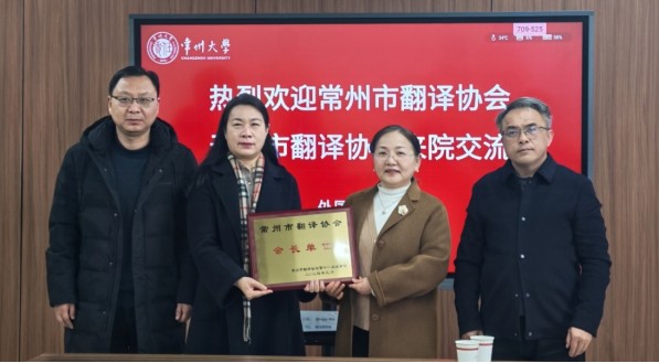 會(huì)議期間,常州市翻譯協(xié)會(huì)還給常大外院頒授了會(huì)長(zhǎng)單位牌匾。