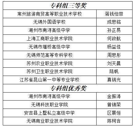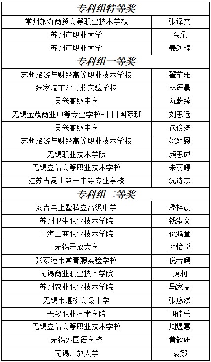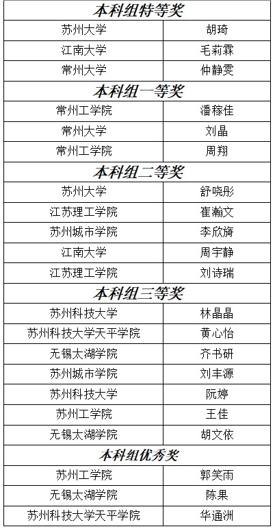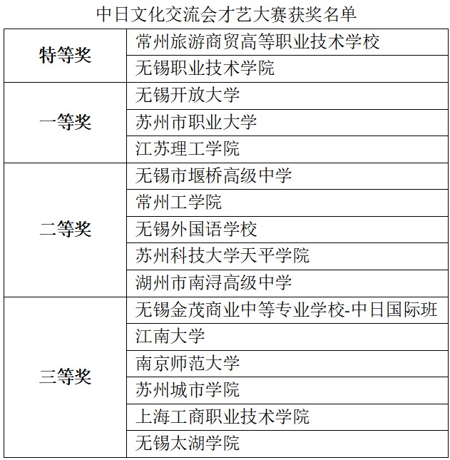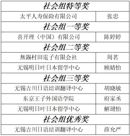 三組分別決出特等獎(jiǎng)、一等獎(jiǎng)、二等獎(jiǎng)和三等獎(jiǎng),并由專家從中綜合評出無錫-相模原友城獎(jiǎng)和總領(lǐng)事獎(jiǎng)各1名。