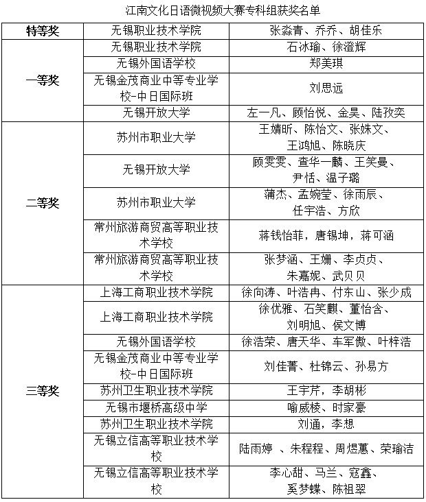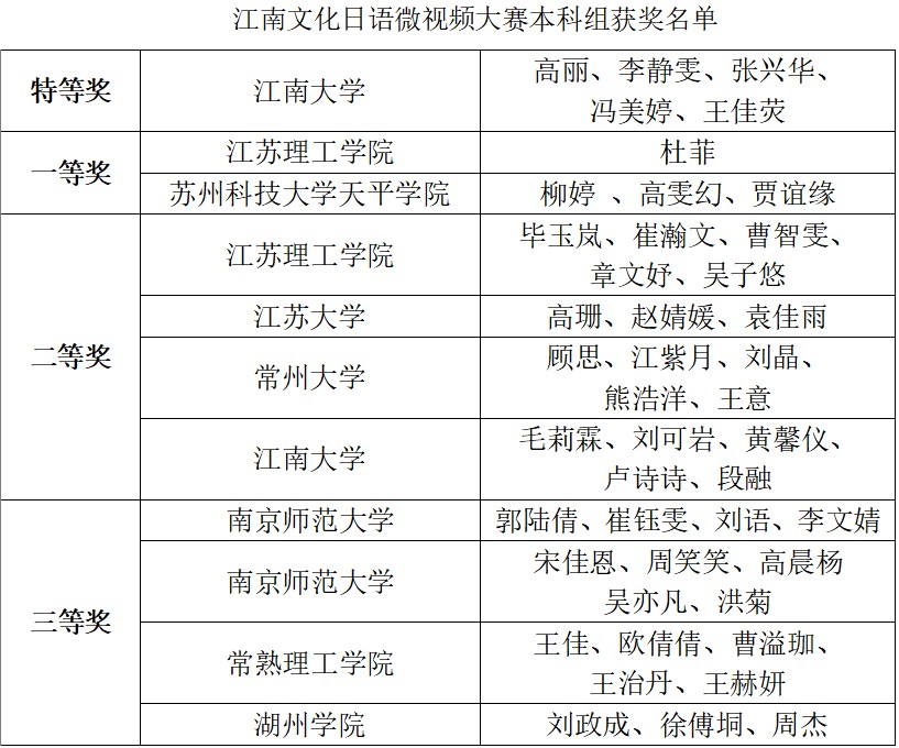 江南文化日語微視頻大賽本科組獲獎(jiǎng)名單