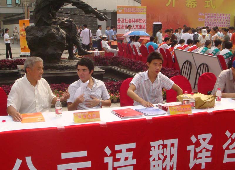 2008年9月20日,第三屆科普學(xué)習(xí)周在無錫市崇安寺步行街廣場隆重召開,我會四名代表參加了開幕式。與往界學(xué)習(xí)周相比,此次學(xué)習(xí)周開幕式上增設(shè)了新華書店的書展和兒童作家現(xiàn)場簽名活動,現(xiàn)場氣氛甚是熱鬧。我會代表在開幕式上就公共標(biāo)識語翻譯方面的問題接受了現(xiàn)場咨詢和無錫廣播電臺的現(xiàn)場采訪。
