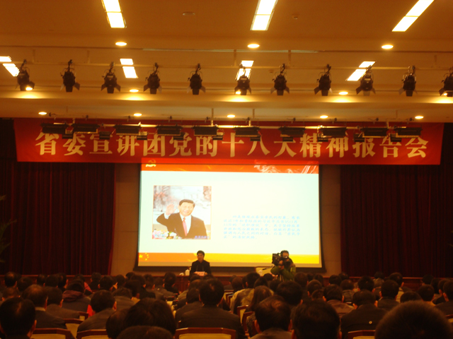 12月5日上午9:00,“省委宣講團黨的十八大精神宣講報告會”在無錫市市民中心舉行。省委宣講團成員、省委宣傳部常務副部長章劍華為主講人。市委常委、市人大、市政府、市政協(xié)、市紀委全體領(lǐng)導同志;市部委辦局、人民團體、直屬單位黨政主要負責同志;濱湖、崇安、南長、北塘、新區(qū)黨政主要負責同志,宣傳部長;部分市級機關(guān)干部;社科理論工作代表出席了報告會。無錫市翻譯協(xié)會2名代表參加了會議。會議由無錫市宣傳部部長王國中主持。