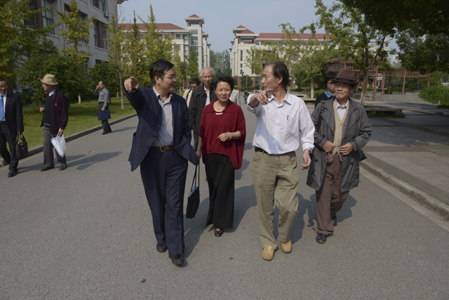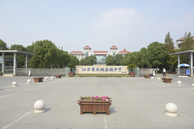 下圖為王校長帶領(lǐng)理事們參觀江蘇省太湖高級中學(xué)和集體合影留念