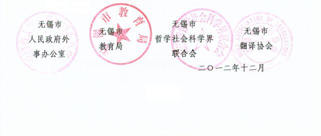 由無錫市人民政府外事辦公室、無錫市教育局、無錫市哲學社會科學界聯(lián)合會聯(lián)合主辦,無錫市翻譯協(xié)會承辦的無錫市第五屆英語翻譯比賽,在2012年9月-10月期間,經(jīng)過初賽和決賽,已圓滿結(jié)束。經(jīng)專家評委評比,獲獎名單如下: