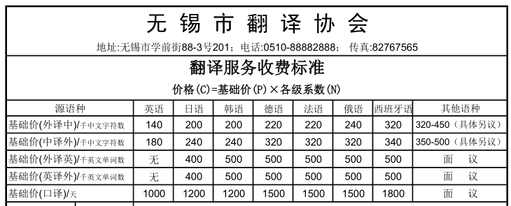 不同級別的筆譯翻譯服務的價格計算公式為:價格(C)=基礎(chǔ)價(P)×各級系數(shù)(N)。